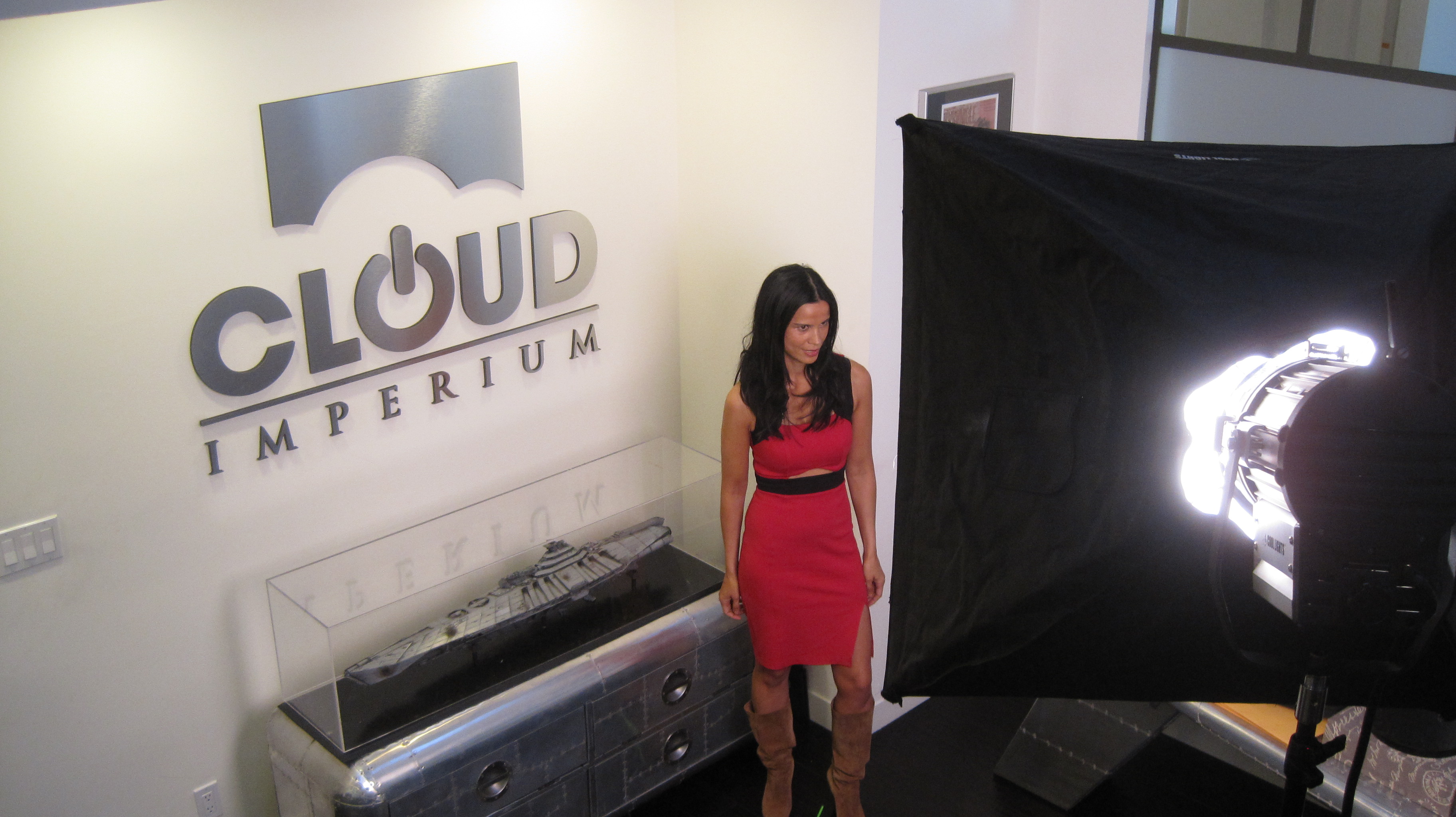 Must be the place! I knocked on the door, it quickly opened up, and I was let in straight into what appeared to be a Hollywood-style film shoot. Literally, I walked into the shot of Sandi Gardiner, Director of Marketing, introducing the Dogfighting module to a throng of cameras for the upcoming video series on their official site.